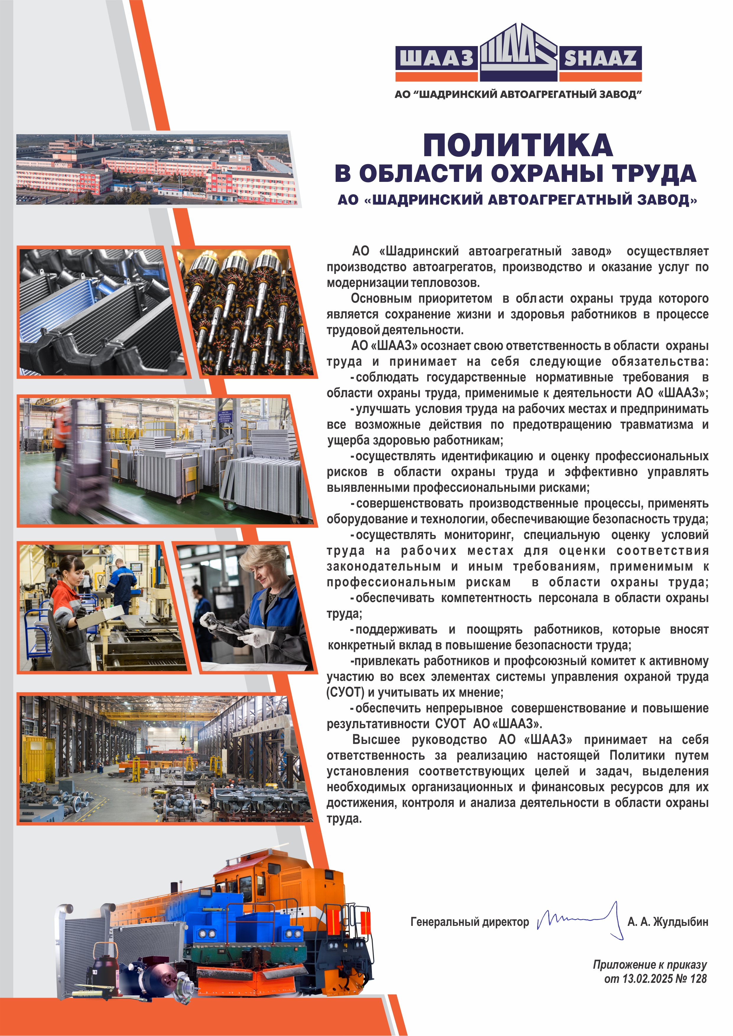 АО «ШААЗ» осознает свою ответственность в области охраны труда и принимает на себя следующие обязательства: